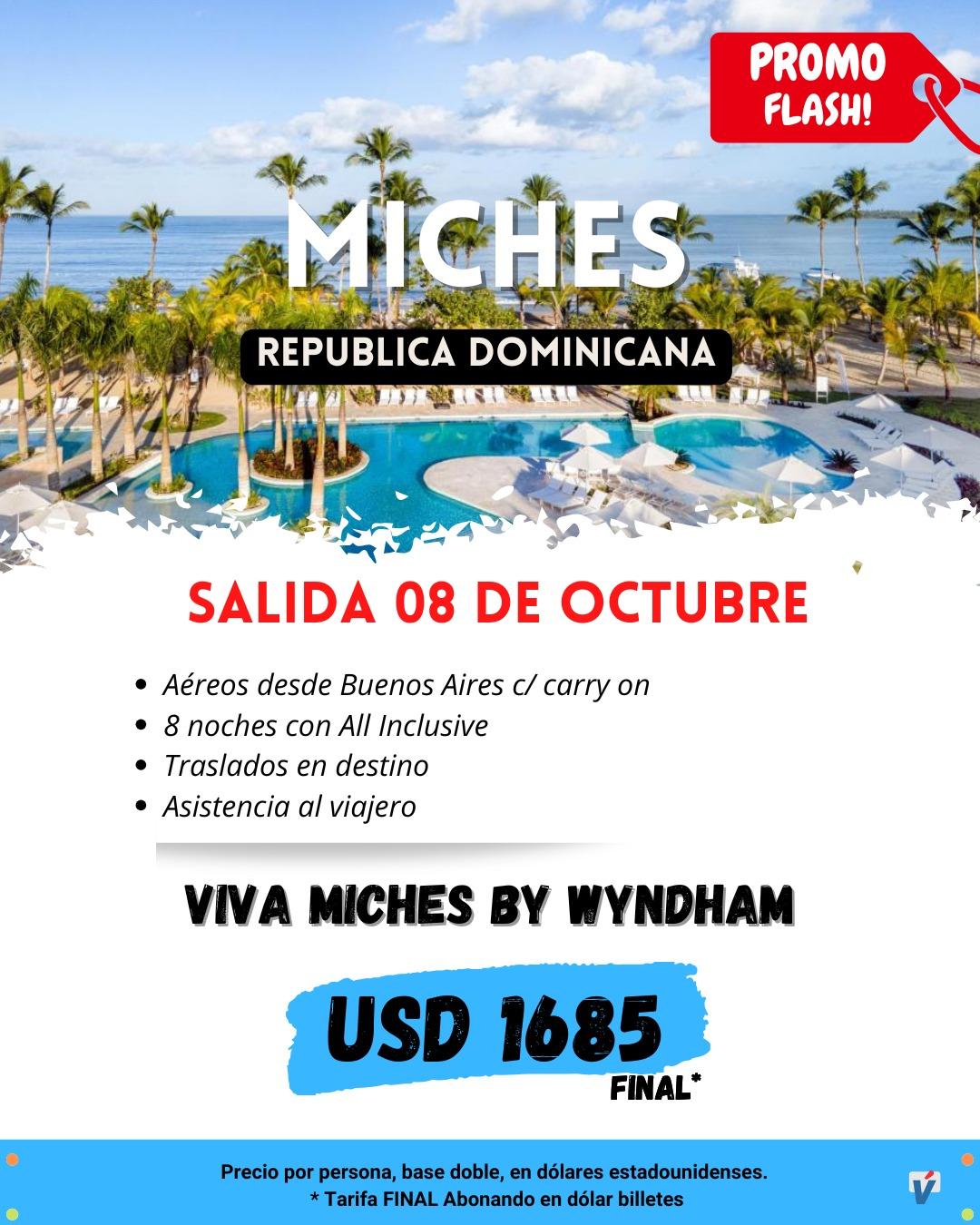 Disfruta de unas vacaciones en Miches, República Dominicana, con todo incluido, traslados en destino y asistencia al viajero. La estadía será de 8 noches en un hotel de la zona, con actividades y servicios pensados para una experiencia completa en el Caribe.